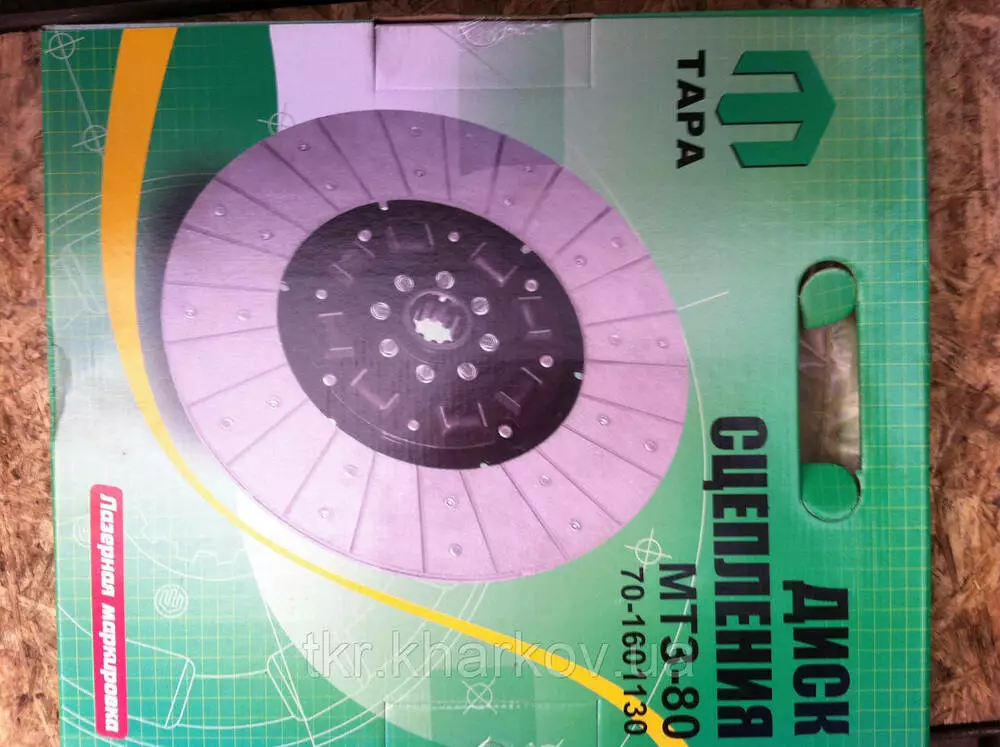 Диск зчеплення МТЗ-80 слугує для справного з'єднання дизелю та трансмісії, короткочасного їх роз'єднання, а також запобігання трансмісії від перевантажень. Каталожний номер деталі 70-1601130.