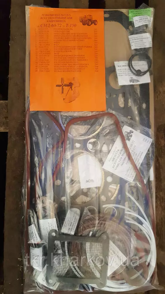 У комплекті є всі необхідні прокладки для якісного ремонту двигуна СМД-60. Комплектація складена відповідно до довідково-технічних посібників і каталогів збіркових одиниць вузлів і агрегатів тракторів.