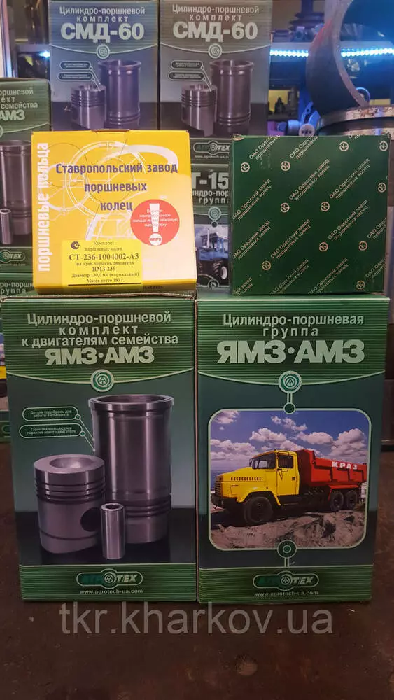 — Поршне комплект до двигунів сімейства ЯМЗ.Застосовуваність — автомобілі МАЗ, КрАЗ, трактори Т-150К, Т-156.