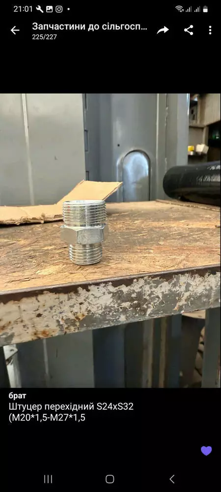Штуцер перехідний S24xS32 (M20*1,5-М27*1,5Оплата та доставка