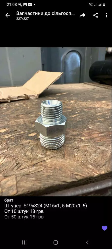 Штуцер S19хS24 (М16х1, 5-М20х1, 5)Оплата та доставка